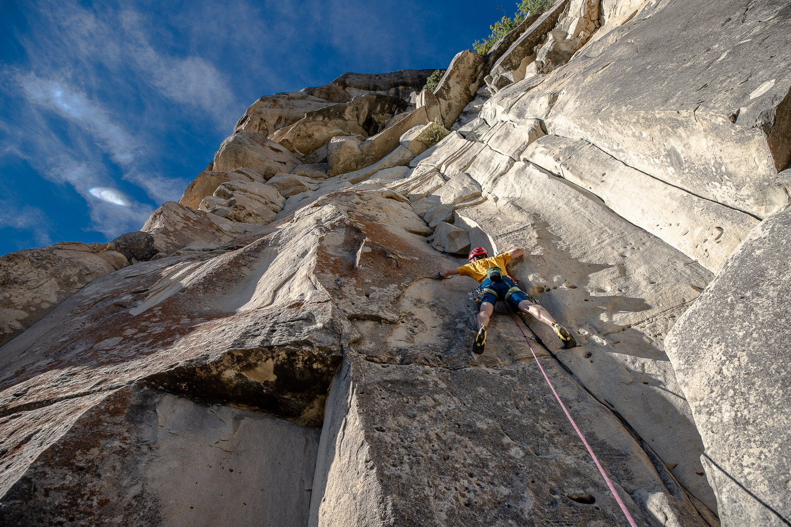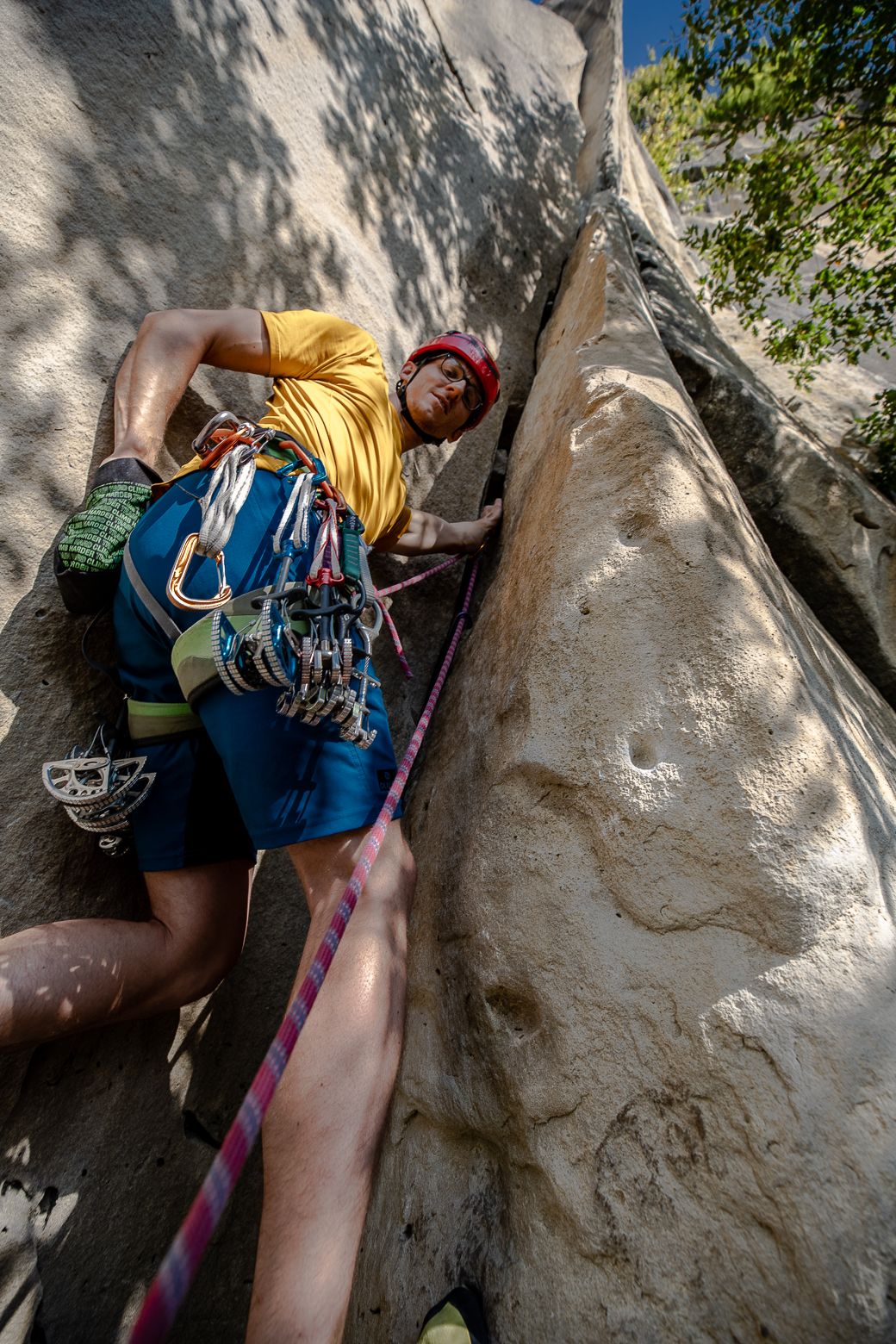 Ik probeer het sportklimmen ook als training voor alpinisme te zien. Goed onsight klimmen is dan eigenlijk meer relevant dan redpointen. Voor mij is het belangrijk om allround te kunnen klimmen, van plaat tot overhang, in verschillende rotssoorten en met verschillende klimtechnieken. In Seynes/Russan heb ik maximaal 2 pogingen per route gedaan. Voor de rest probeer ik vooral nieuwe routes op te zoeken waarbij ik nog niet weet hoe ik de bewegingen moet uitvoeren. Mentaal vind ik dit ook het meest uitdagend, omdat je soms wel een verre voorklimval kan maken. In sommige moeilijke routes bevroor ik soms boven de haak en liet ik me vallen. Maar het ging vaak ook wel lekker en ik heb een aantal mooie 6C’s en een paar leuke maar ook onduidelijke 7A’s onsight gedaan.