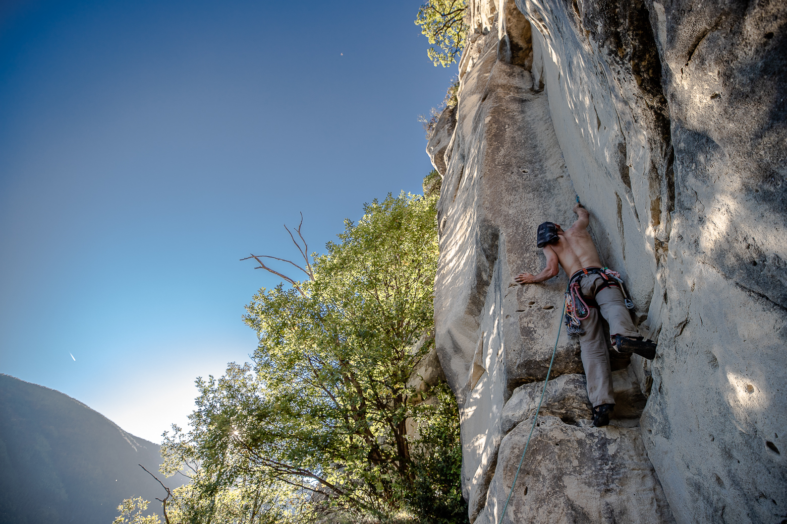 Russan is ook erg leuk. We zijn hier maar één dagje geweest, omdat het ver rijden was vanaf ons vakantiehuis. Ook dit gebied ligt vol op het zuiden. Er zijn hier honderden routes in alle gradaties, en het is iets beter geschikt voor een gezelschap met uiteenlopend klimniveau. De omgeving is erg mooi door de rivier die beneden in de kloof stroomt. Het is wel verder aanlopen dan Seynes. De wanden zijn ook iets minder indrukwekkend maar dat heeft ook wel weer als voordeel dat het toegankelijker is.