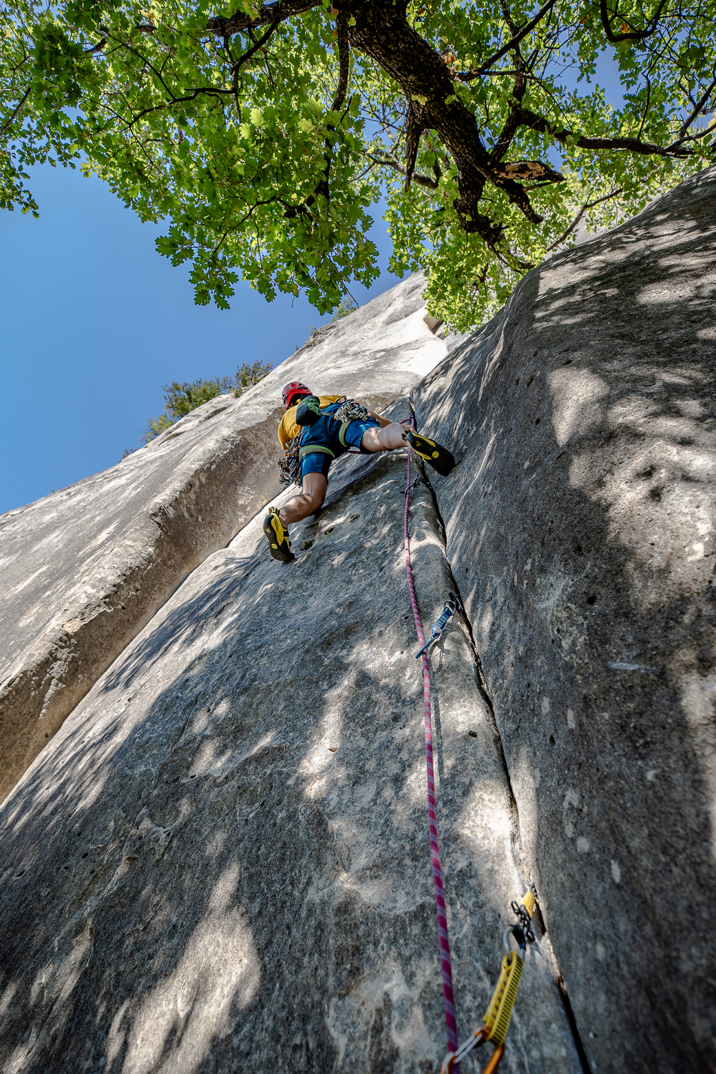 Seynes is vooral een gebied voor 6e en 7e graads klimmers, maar ook als je het makkelijker of moeilijker zoekt kan je hier ook goed aan de slag. Het is een hele brede wand, opgedeeld in verschillende sectoren. De Nouveau Monde sector is het paradepaardje met een flinke overhang en fotogenieke tufa’s. De andere sectoren zijn ook erg leuk, maar hebben een verticaal, technisch karakter en zijn misschien iets minder speciaal. De behaking is dik in orde.